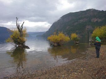 Wir trotzen dem Wetter und fahren an den Strand. Wir fahren dazu am Lago Lacar (an dem auch San Martin de los Andes liegt) nach Quila Quina. Die Strecke dahin ist bis jetzt die spannendste die wir hatten. Die Stelle am See befindet sich im Nationalpark (welcher 2500$pro Person Eintritt kostet)