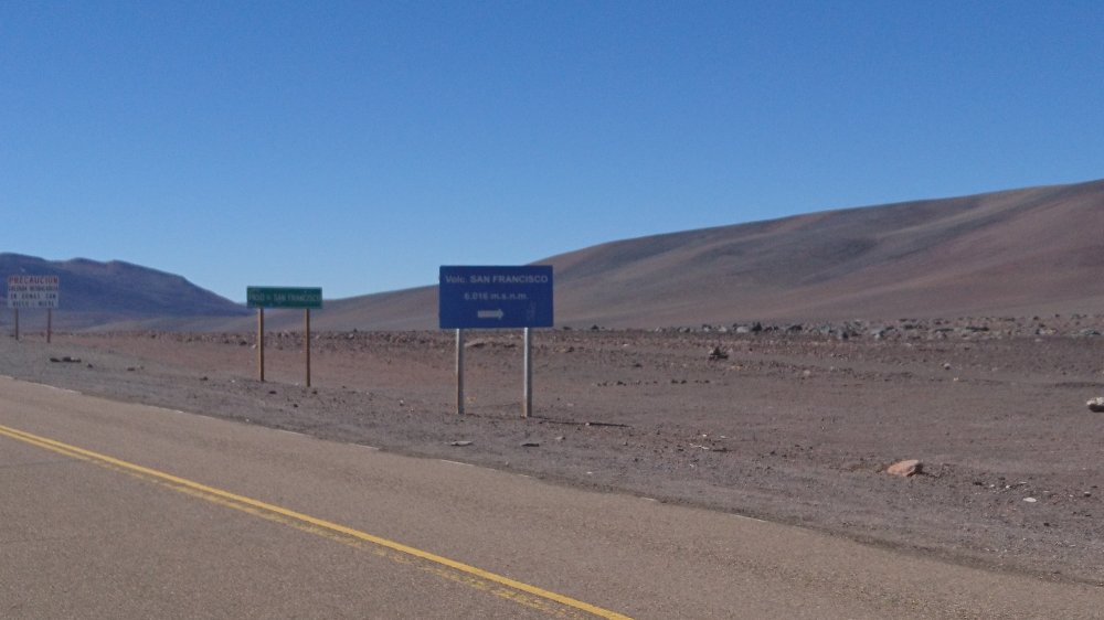 Es ging weiter, gute zwei Stunden (ca. 130km) durch das Niemandsland zur Chilenischen Grenze über den Pass mit 4624m.ü.n.N..