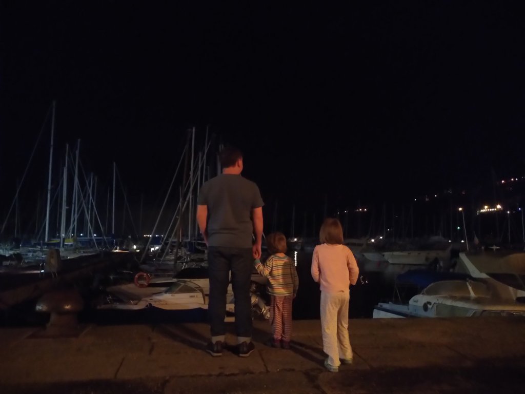 Es kommt so einiges zusammen bis wir loskommen. Der Bus ist voll und alle Vorkehrungen sind getroffen. Gegen 17:30 Uhr schaffen wir es den Stuttgarter Kessel zu verlassen und voll Erwartungen in den Urlaub zu starten. Als Abschiedsabendessen kehren wir beim gold „M“ ein, rutschen, essen und Zähneputzen. Dann geht es mit neuer Energie gegen 21:30 Uhr in die Nacht. Schlafene Kinder und freie Fahrt erleichtern uns den Weg, dass wir gegen 3:30 Uhr Triest in Italien erreichen. Ein nächtlicher Hafenerkundungscheck am Stellplatz, bevor das Dach ausgeklappt wird und die Nachtruhe erleichtert wieder einkehrt. Die Klappernden Segelmasten singen ihr Schlaflied.