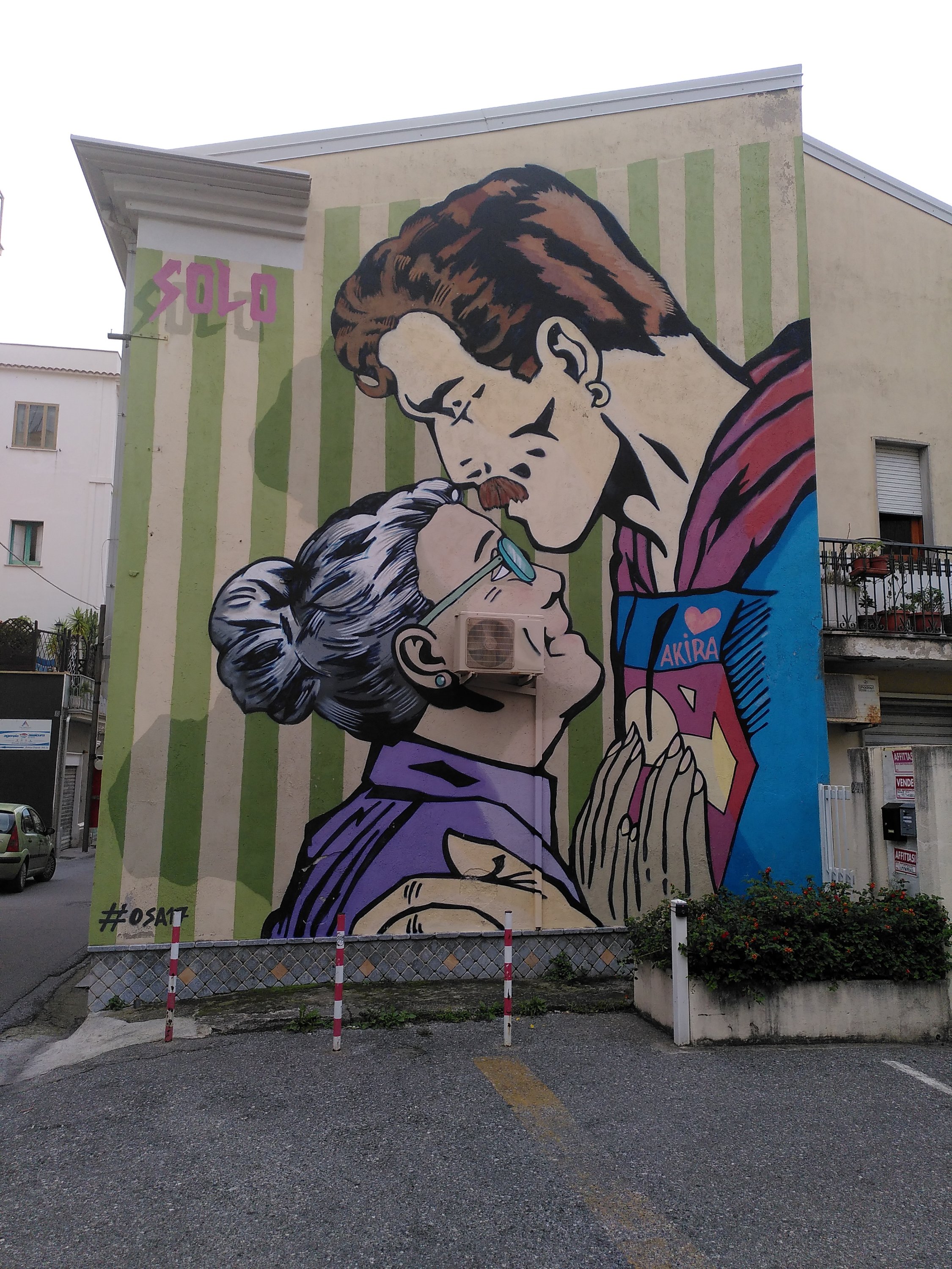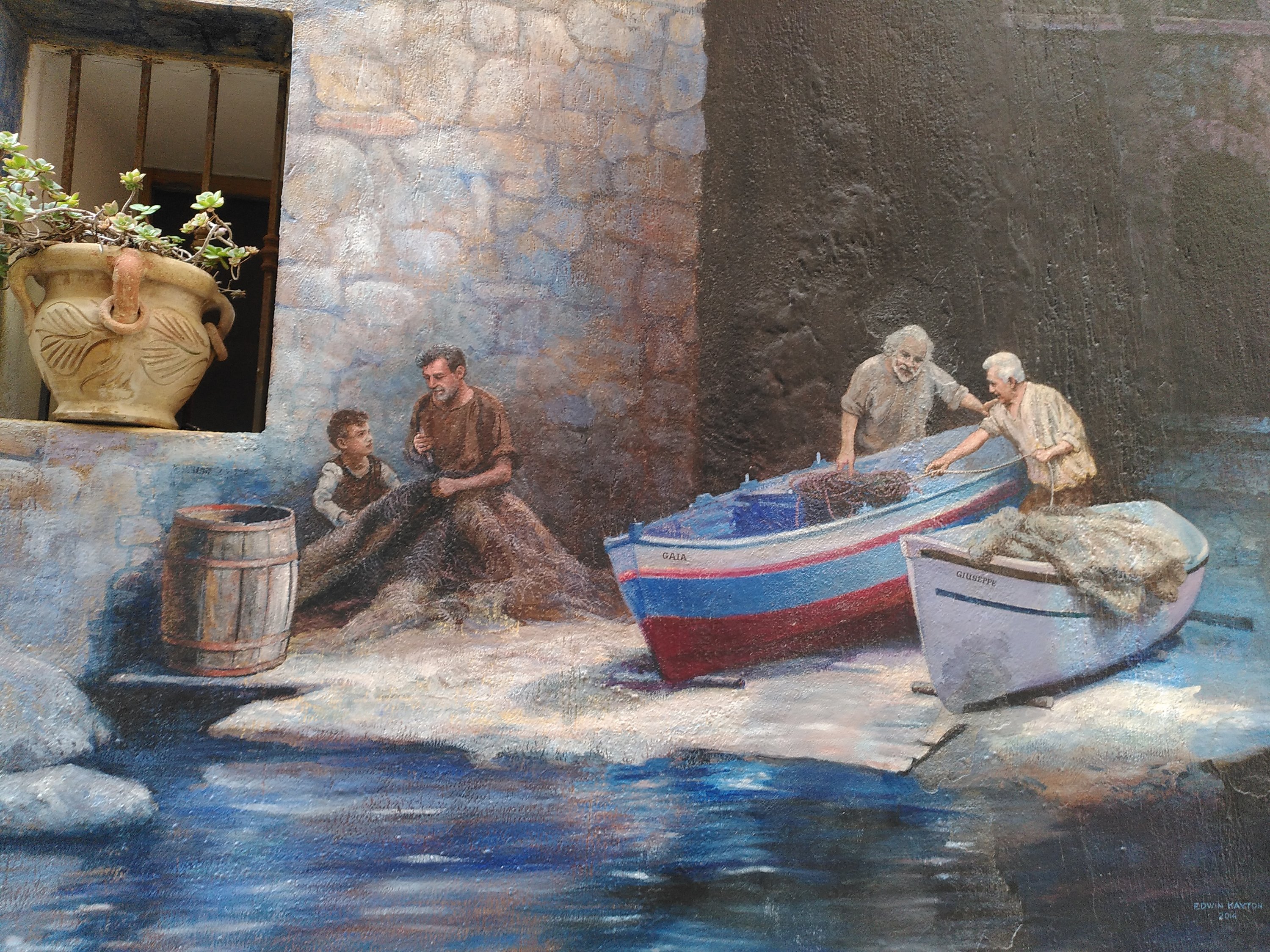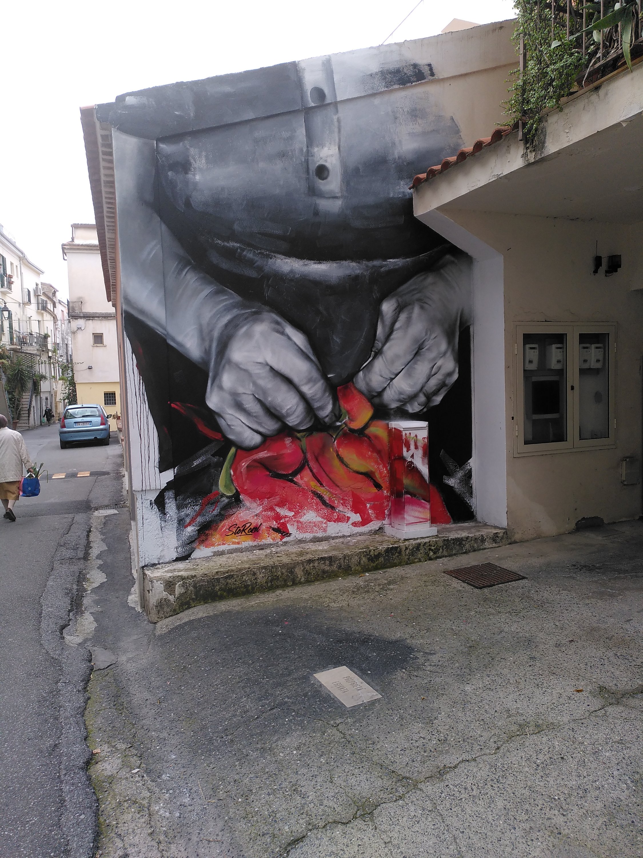 An so einigen Hauswänden finden wir Gemälde und eindrucksvolle Bilder. Manche entdeckten wir erst wenn wir direkt davor stehen oder wieder zurück gehen, und die Perspektive ändern. Zum Abendessen gibt es die übliche Pizza.