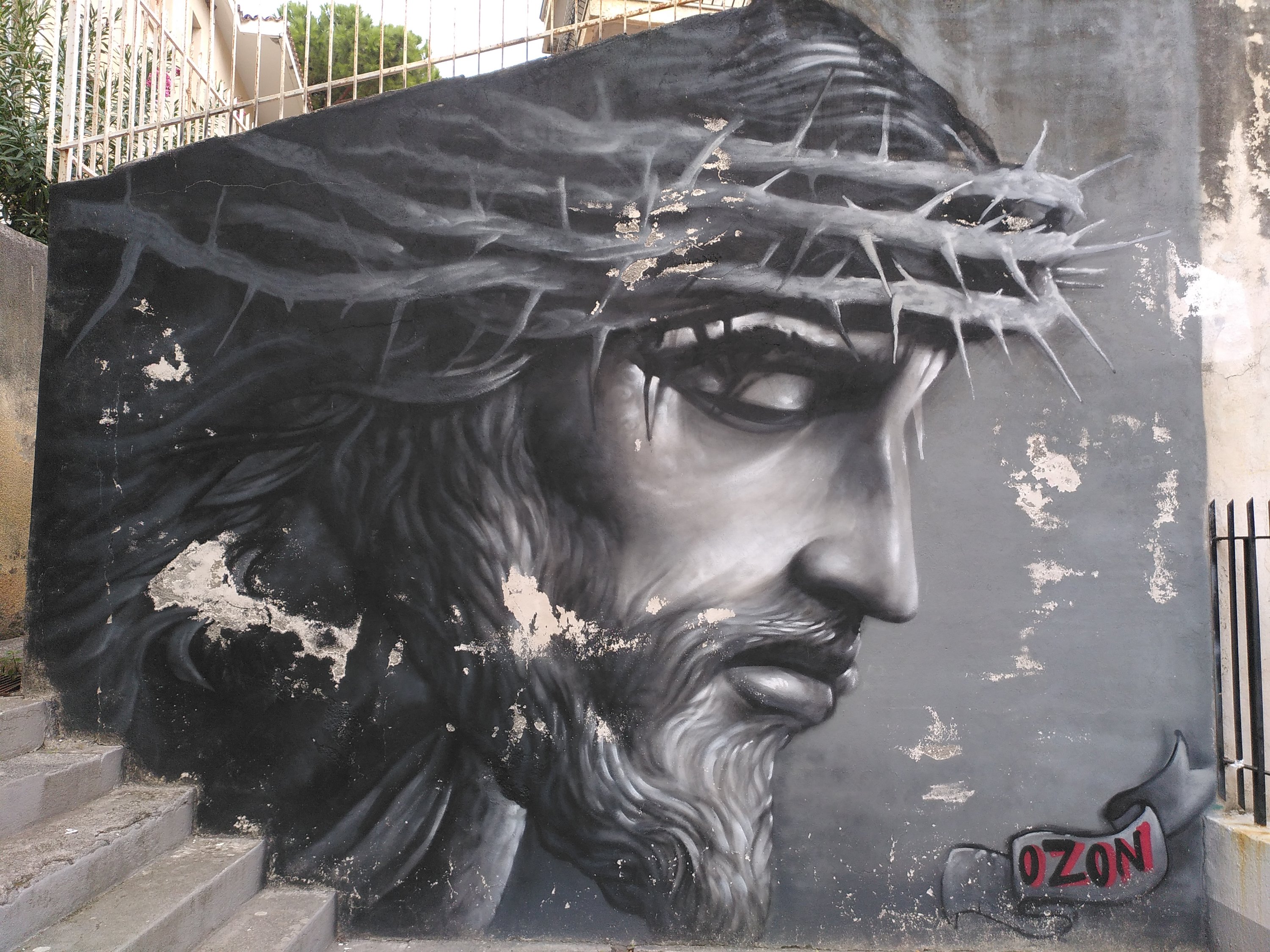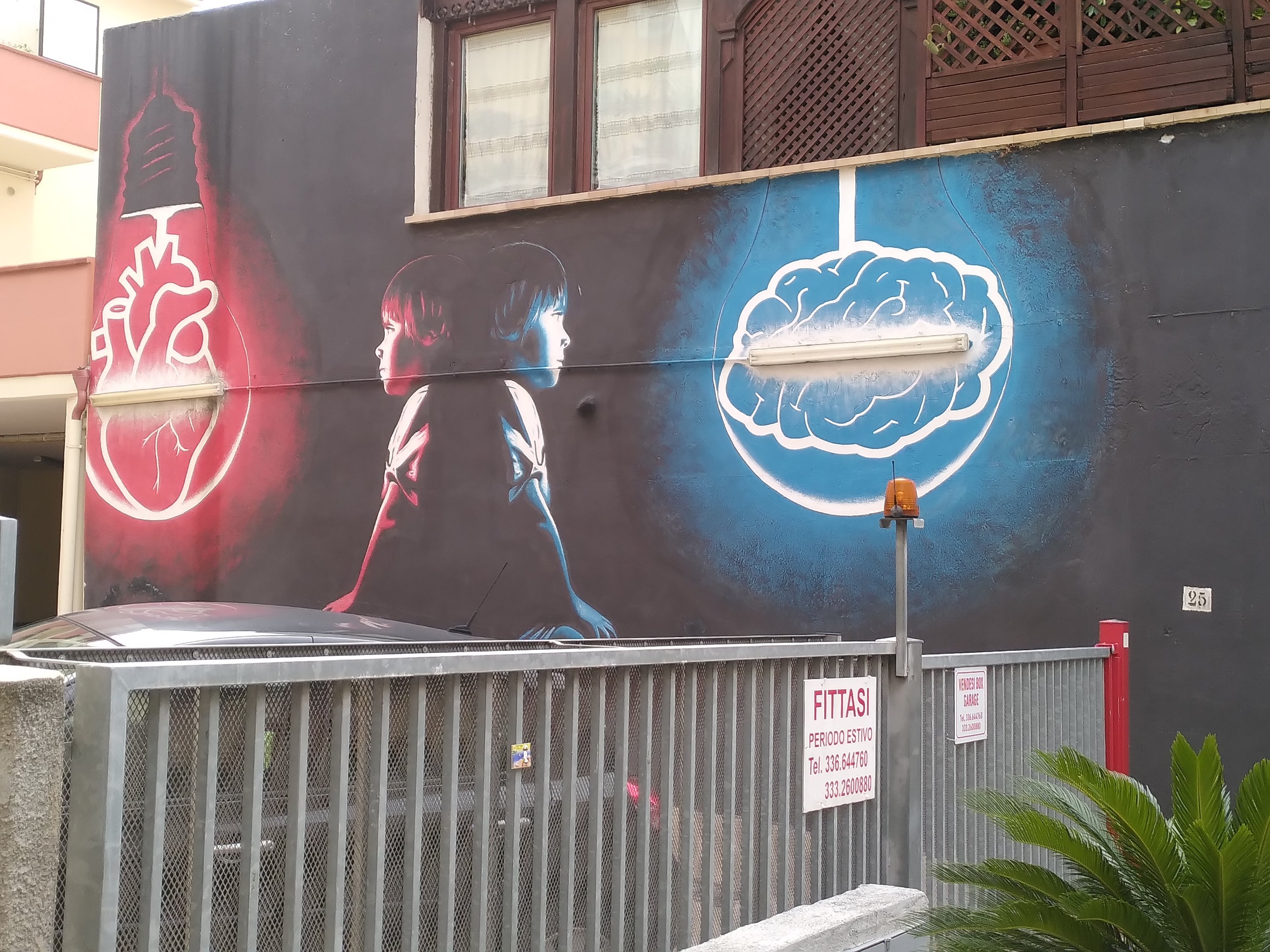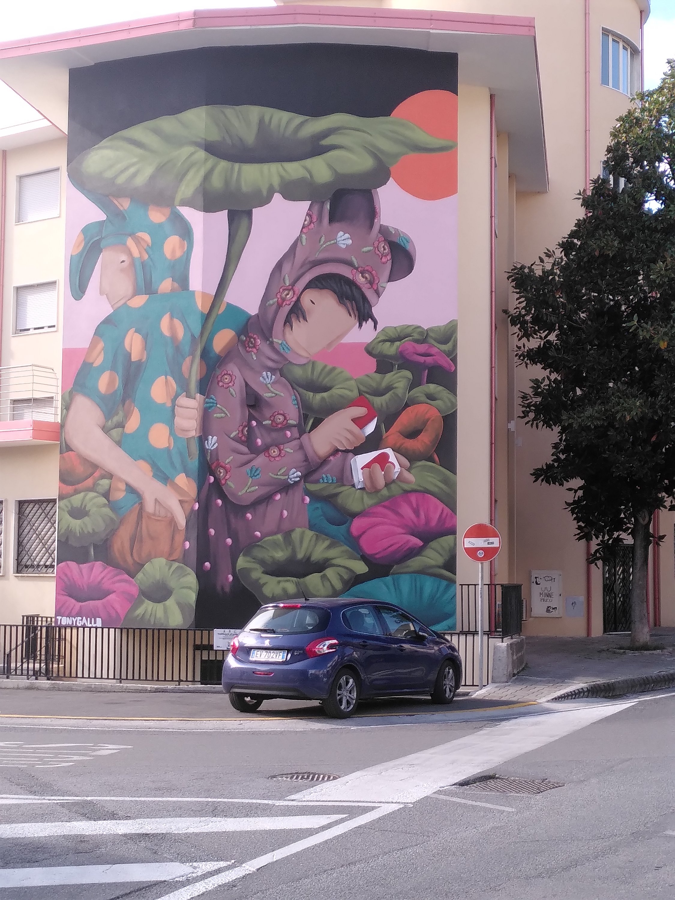 An so einigen Hauswänden finden wir Gemälde und eindrucksvolle Bilder. Manche entdeckten wir erst wenn wir direkt davor stehen oder wieder zurück gehen, und die Perspektive ändern. Zum Abendessen gibt es die übliche Pizza.