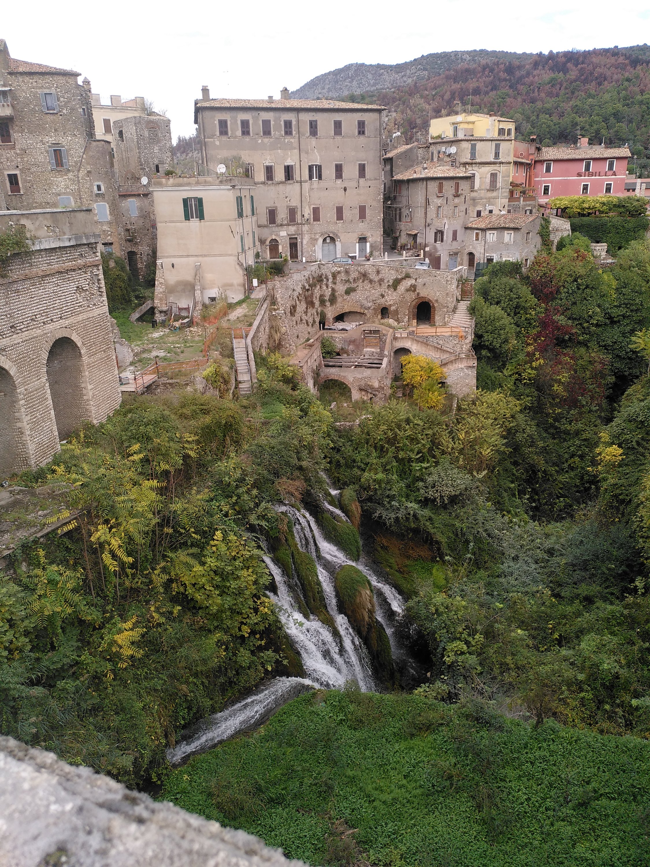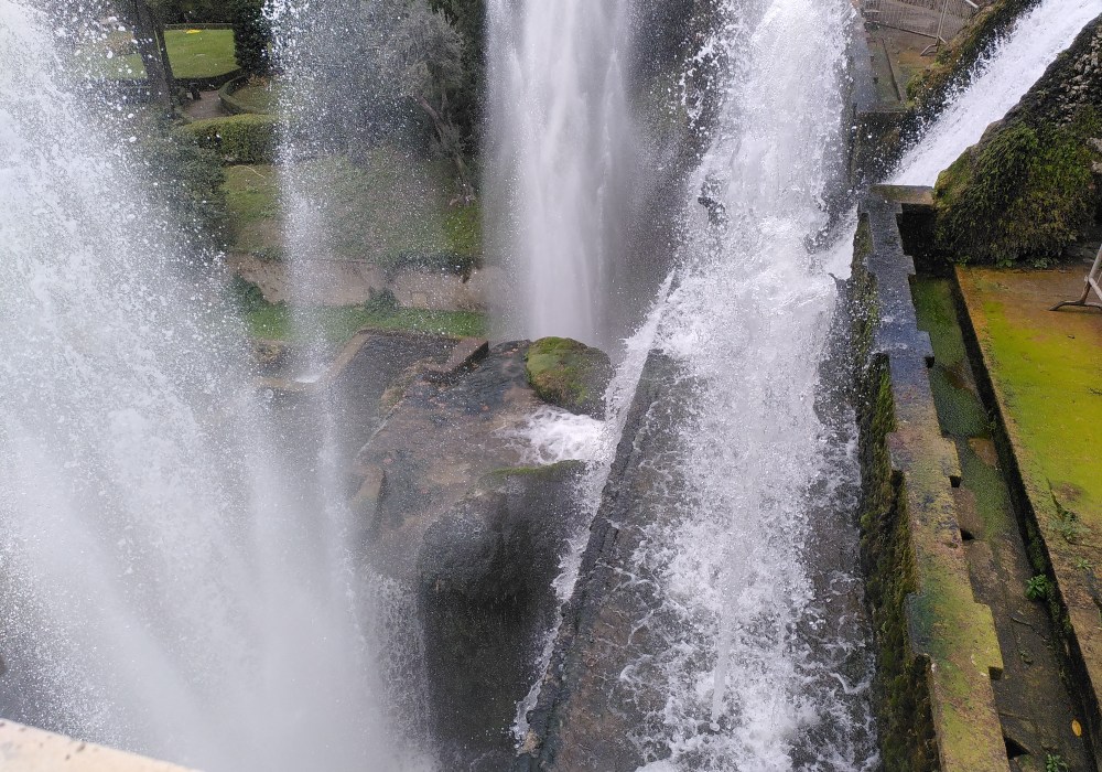 Da wir hier schon viel staunen und durch klogänge Kilometer zurücklegen, kürzen wir unseren Stadtrundgang ab und gehen zur Brücke bzw. Zur Villa Gregoriana. Hier kann man durch ein naturparkähnliches Gelände wandern und Wasserfälle sehen. Da dies auch wieder Eintritt kostet und die Laufmotivation nicht so hoch ist, entscheiden wir uns am Eingang dagegen und gehen noch ein bisschen durch die Stadt, über den Markt, essen Joghurt mit Streuseln und machen uns auf den Weg nach Rom.