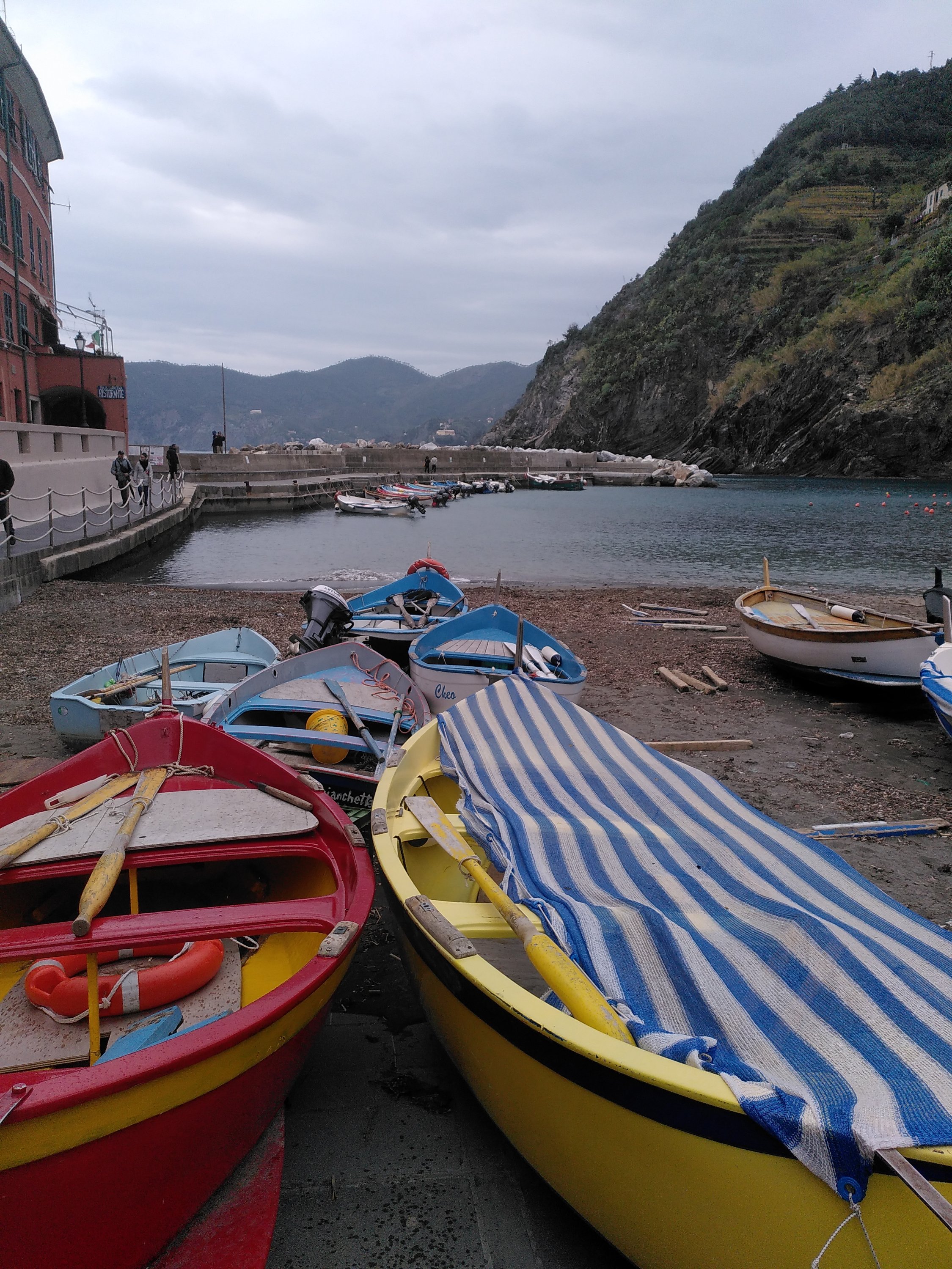 Obwohl wir an diesem Tag nicht ganz so sonniges Wetter hatten, empfanden wir das Cinque terre Gebiet sehr schön. Es hat uns an die Amalfi Küste erinnert. Die Schluchten sind nicht ganz so steil bebaut aber trotzdem sehr schön. Entspannt ist auch das kaum Autos fahren.