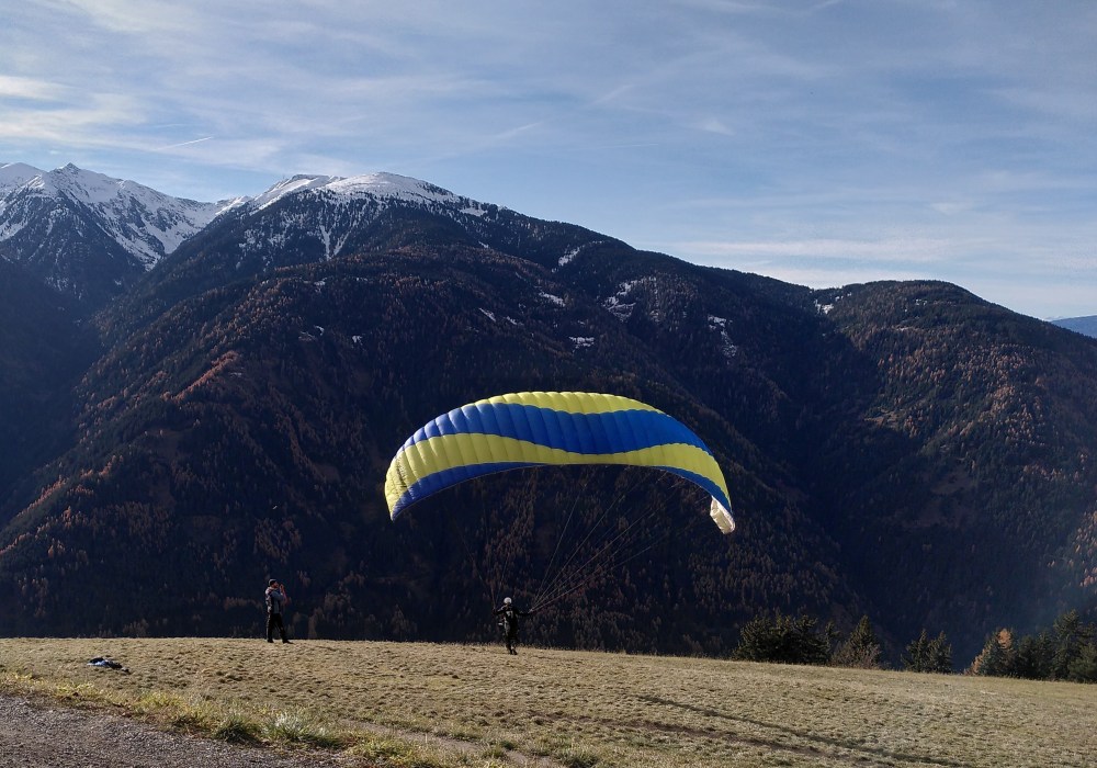 Hier in Lüsen konnten wir ein paar tolle Starts von Paragleitenden sehen und uns selbst fliegend träumen.
