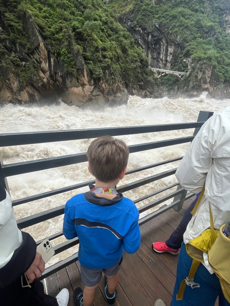 Heute wagt sich Jens mit Johann und Mathilda in die Berge. Der Sessellift fährt sie hoch. Oben wandern sie fast meditativ 15 km am Berg entlang, mit schöner Aussicht auf Dali und den See. Vorbei an erfrischenden Wasserfällen und toller Landschaft bis zur Gondel die ins Tal führte.