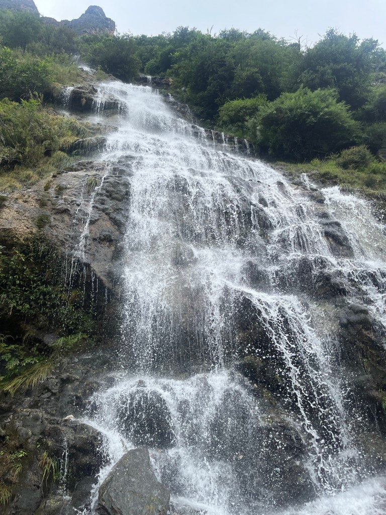 Wir wandern zweieinhalb Stunden auf ca. 2300m und gegenüber erstreckt sich ein Berg, der fast 5000m hoch ist. Manchmal war es sehr rutschig und eine Ziege war sehr aufdringlich. Aber es war wunderschön.