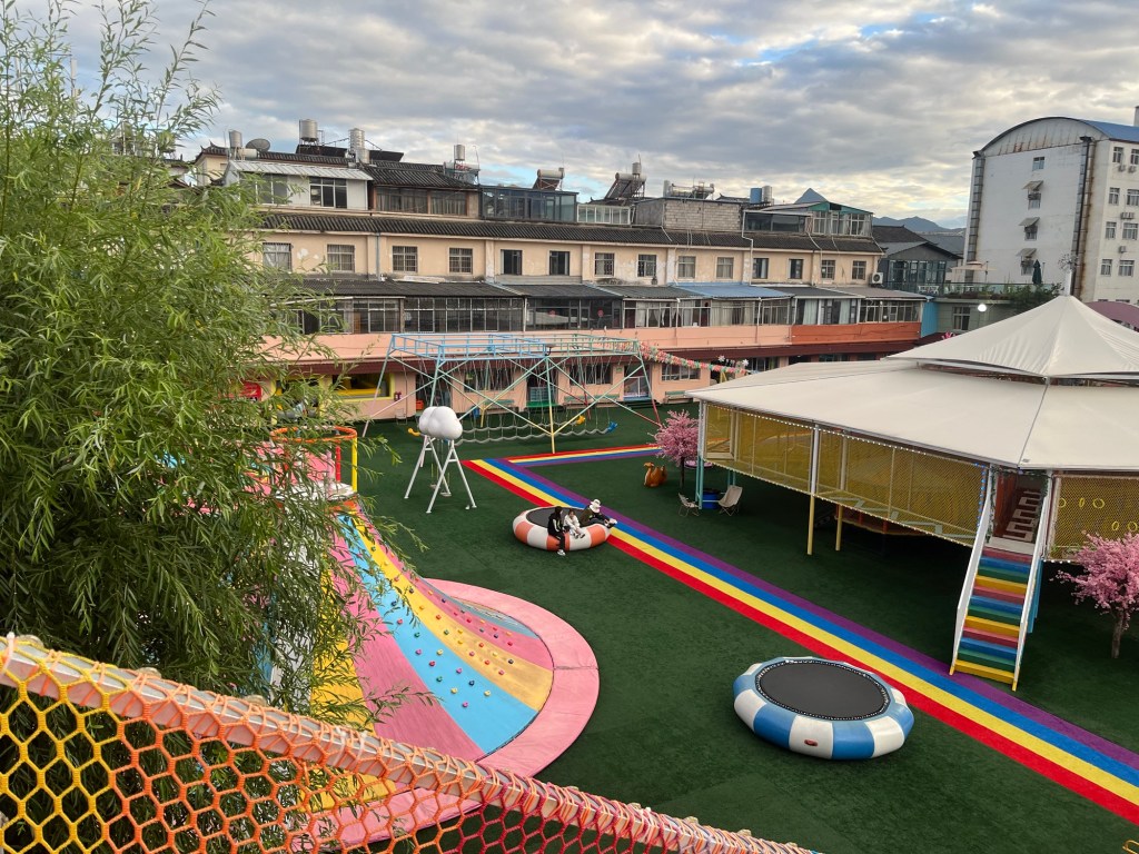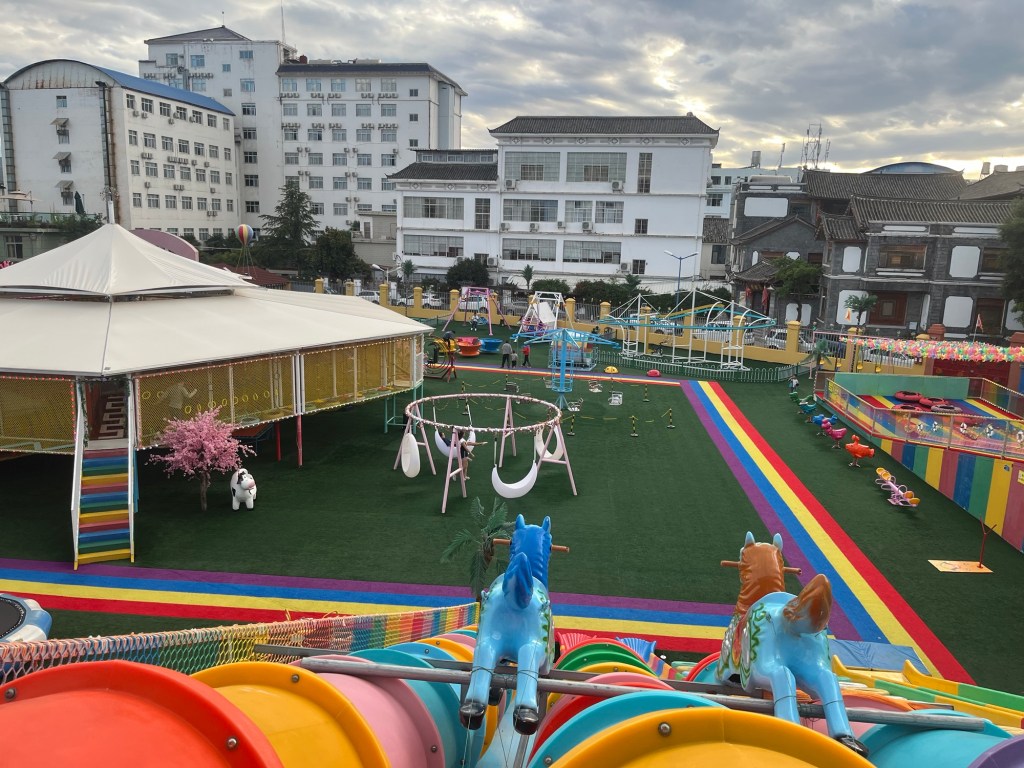 Währenddessen erkundeten Milla und Jens Lijian ( liegt auf knapp 2500m ü.N.) Einen Park und entdeckten einen indoor Spielplatz draußen den wir am Abend zusammen unsicher machten.