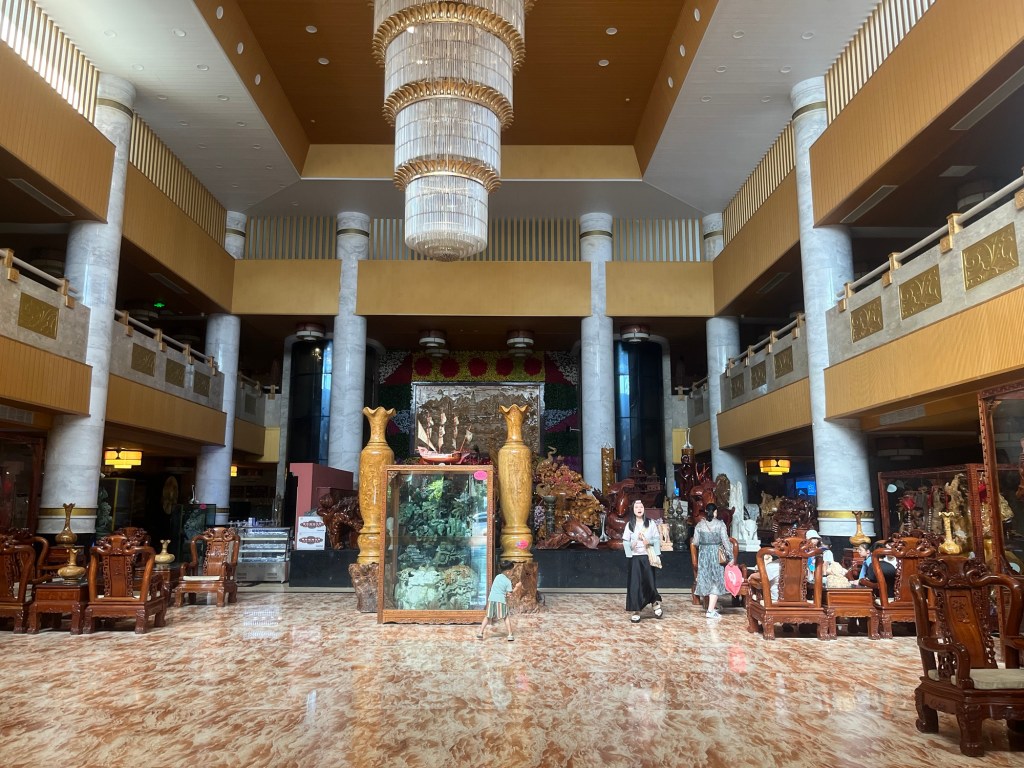 Nach zweieinhalb Stunden Busfahrt erreichten wir Dali. Unser Hotel war irgendwie gleichzeitig ein eins Skilpturenausstellung und man musste sich zum Zimmer durch ein Labyrinth von gruseligen und komischen Stein und Holzfiguren kämpfen, aber es hat auch einen Pool. Und so gingen wir mit der Gruppe Mittagessen und dann suchten wir eine Wäscherei. Dann eine Runde in den Pool und zum tollen Abendessen
