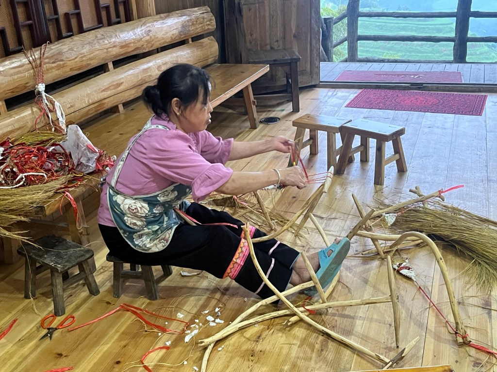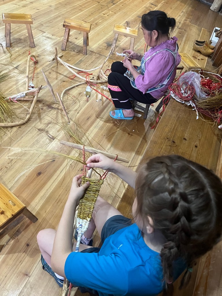 Außerdem durfte ich mit den Kindern bei einem Workshop von traditionellen Schuhe Flechten zuschauen und ausprobierten.