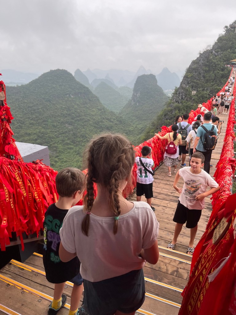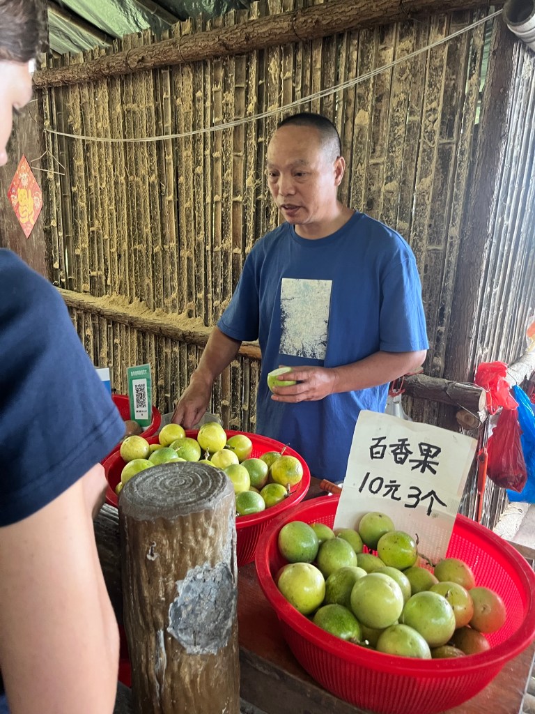 Nach dem Mittag stiegen wir bei Regen wieder ab und kamen abends nach zwei Busfahrten in Yangshuo an.