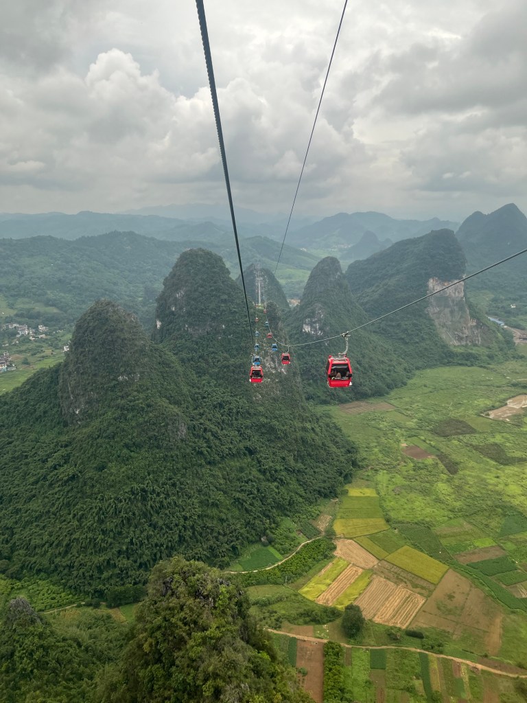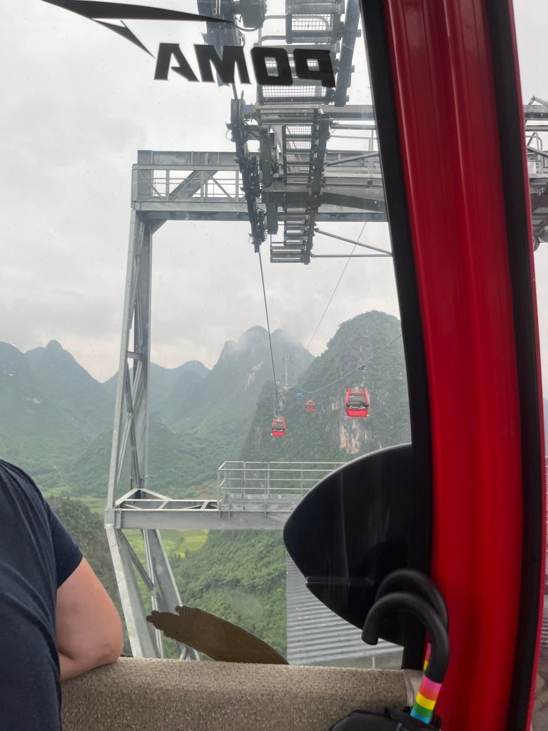Yangshuo- Zu einer angenehmen Zeit, fährt uns der Bus am Morgen zur Gondel, die uns über und