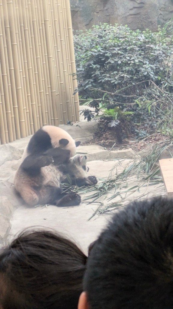 Dort konnten wir einige Panda in Aktion sehen. Für ein Pandakind mussten wir mit vielen Menschen recht lang warten. Die Anlage war sehr sauber und modern.