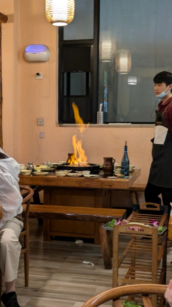 Nach einem kurzen Flug mit leichten Turbulenzen und kurzer Landebahn, landeten wir dann abends in Lijiang.