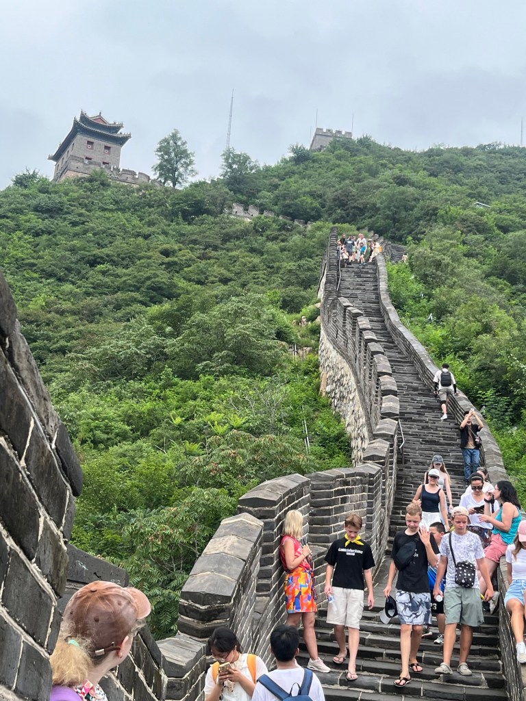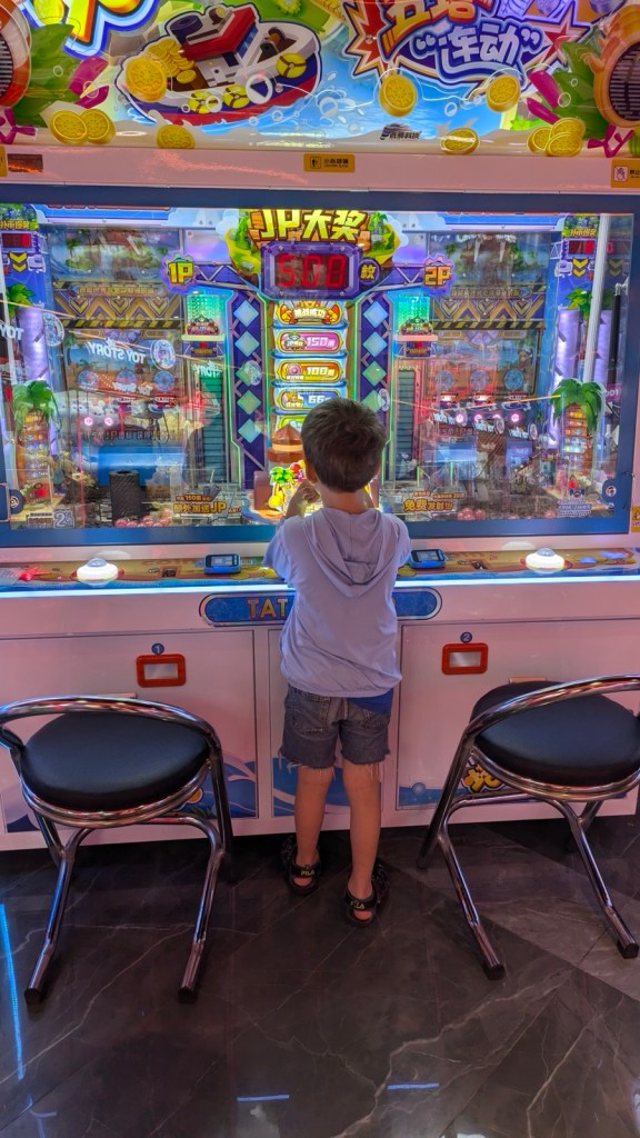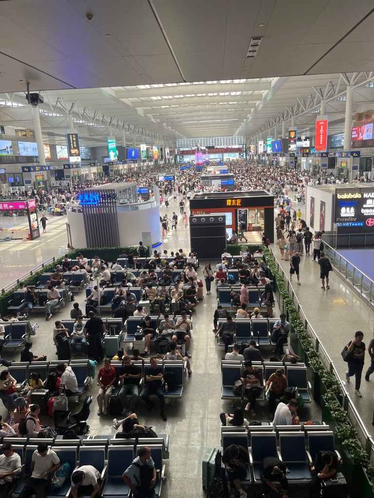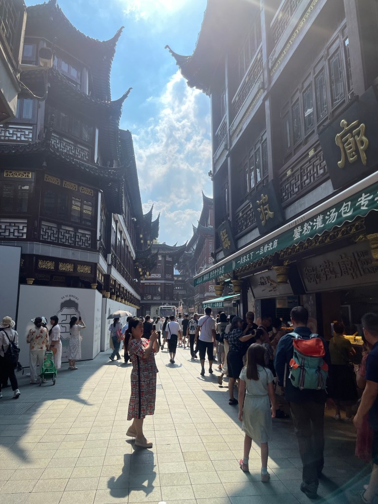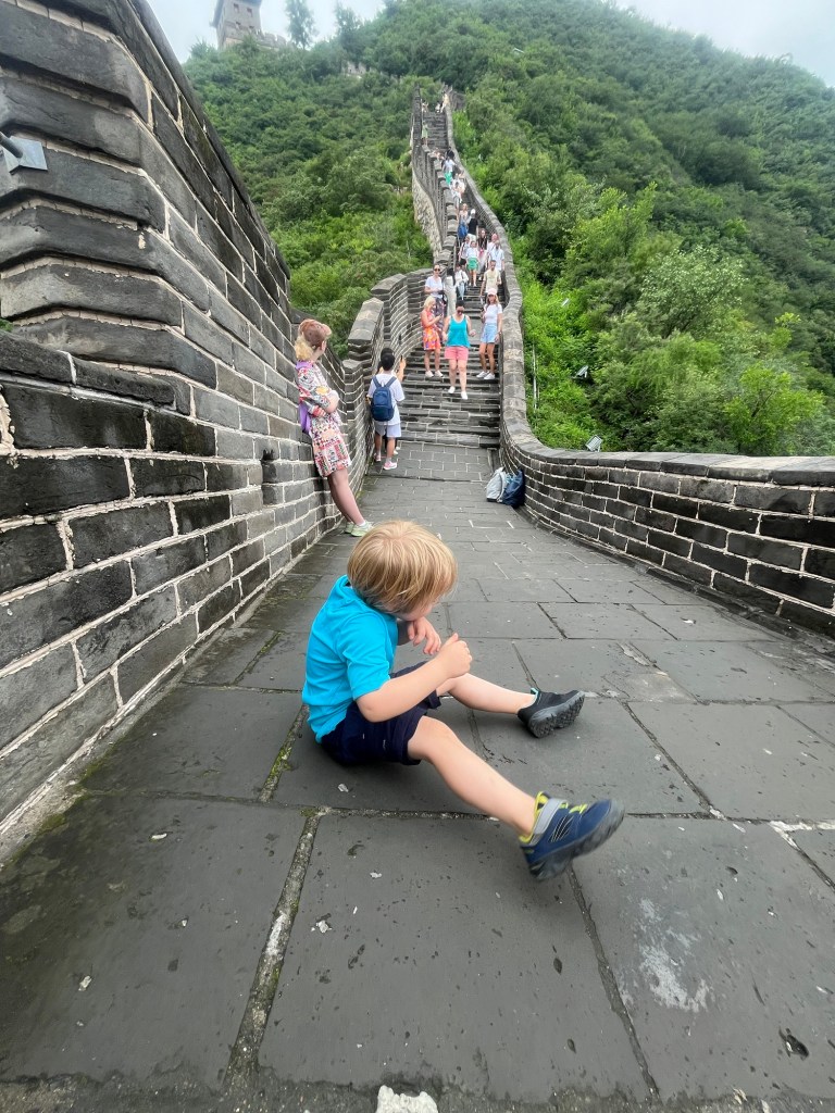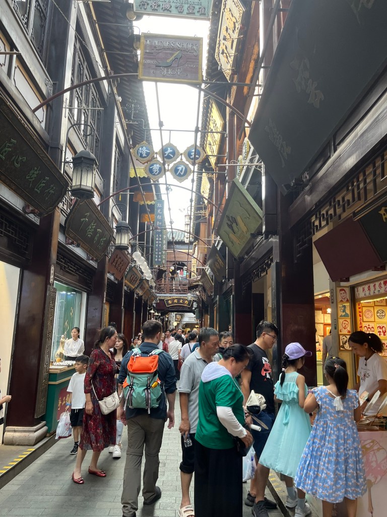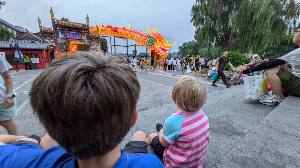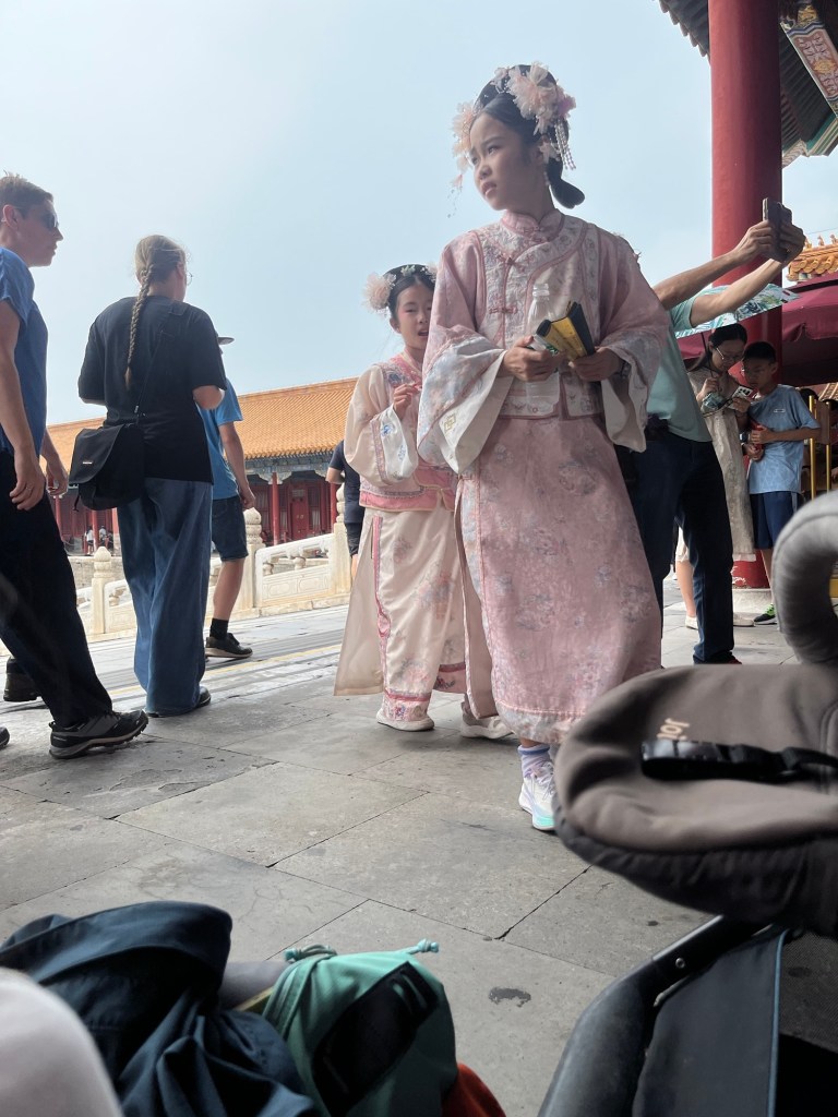 Der Nachtzug hat uns doch ganz schön gerädert und vorallem die Ankunftszeit (5:30Uhr), so dass wir uns den frühen Vormittag erstmal im Hotel ausruhten und I’ve frisch machten. Es gab auch die Möglichkeit zu waschen und so sortierten wir Wäsche. Später wollten wir die Gegend um das Hotel erkunden und holten uns noch ein spätes Frühstück bei einer Bäckerei. In einer Apotheke bekamen wir noch Sonnencreme und mückenspray und dann bekam Johanna Auge zu tränen, das Jens mir den Mädels eine Sonnenbrille besorgte und wir dann nochmal Mittagsruhe machten. Dann wagten wir uns in die Altstadt nach Xian- zum Glockenturm und ins muslimische Viertel. Dort war das Gewusel wieder groß und wir schauten, probierten und ließen uns von der Menschenmasse treiben.