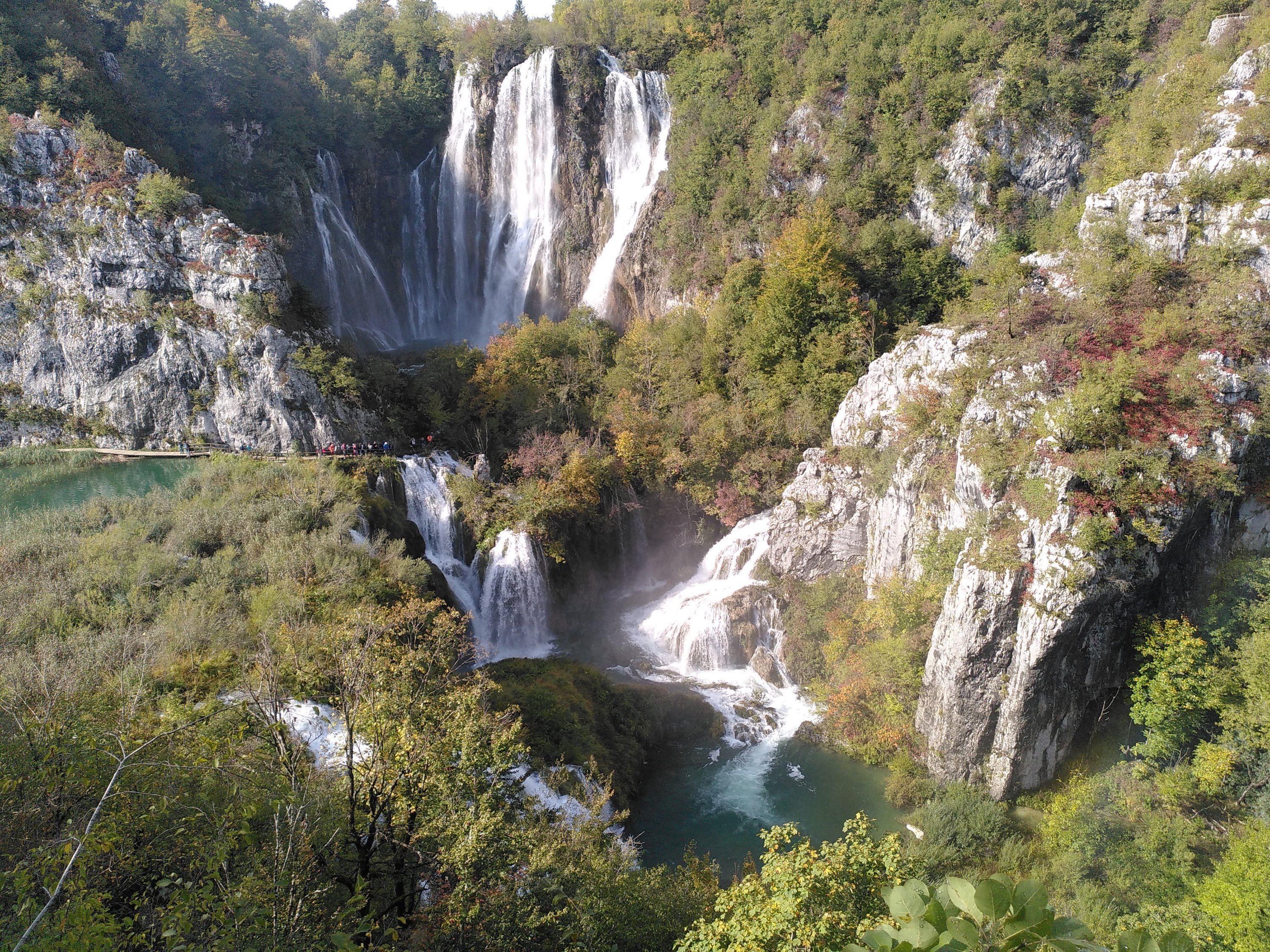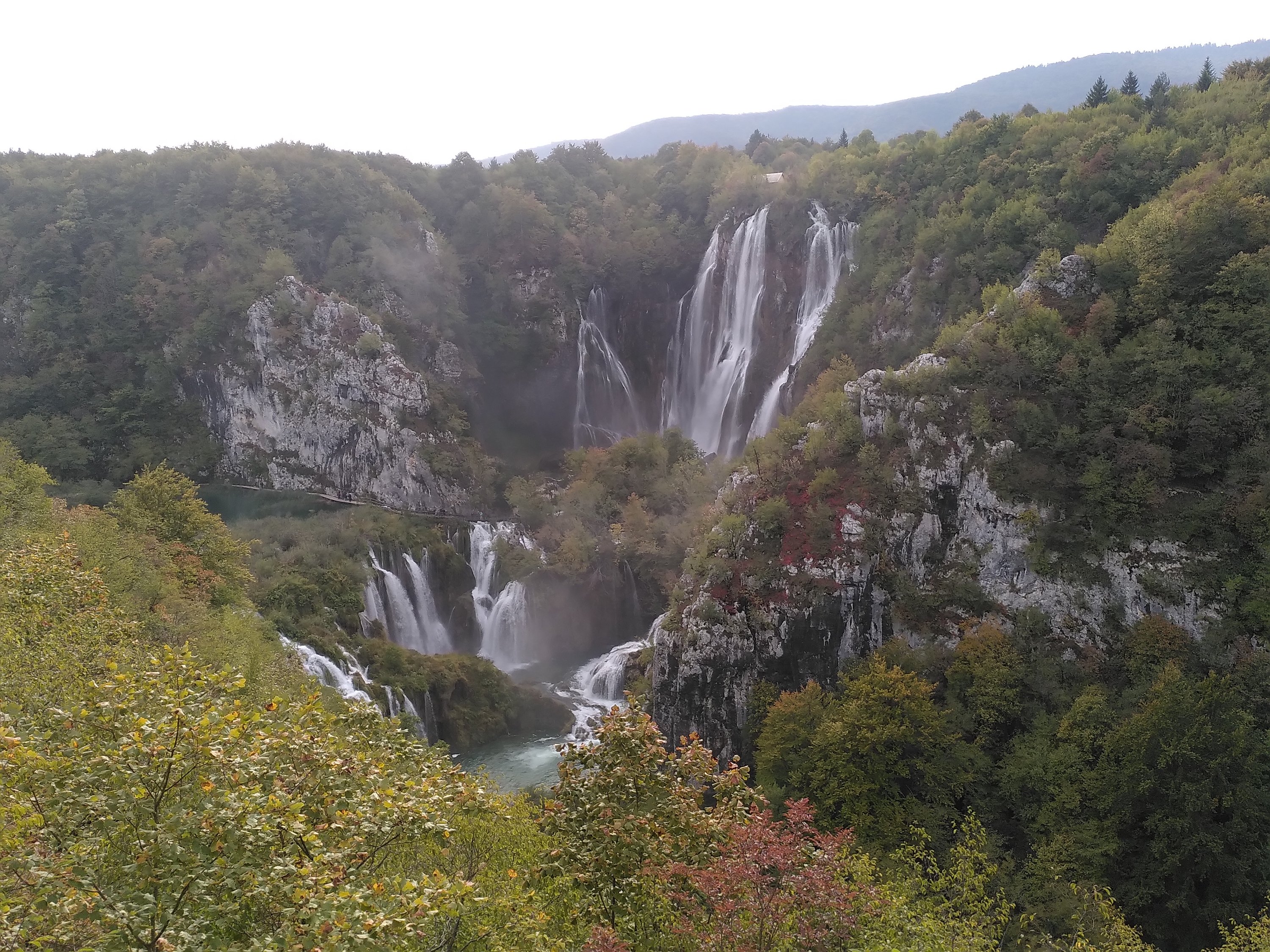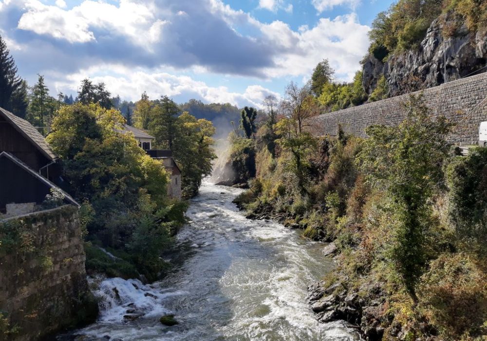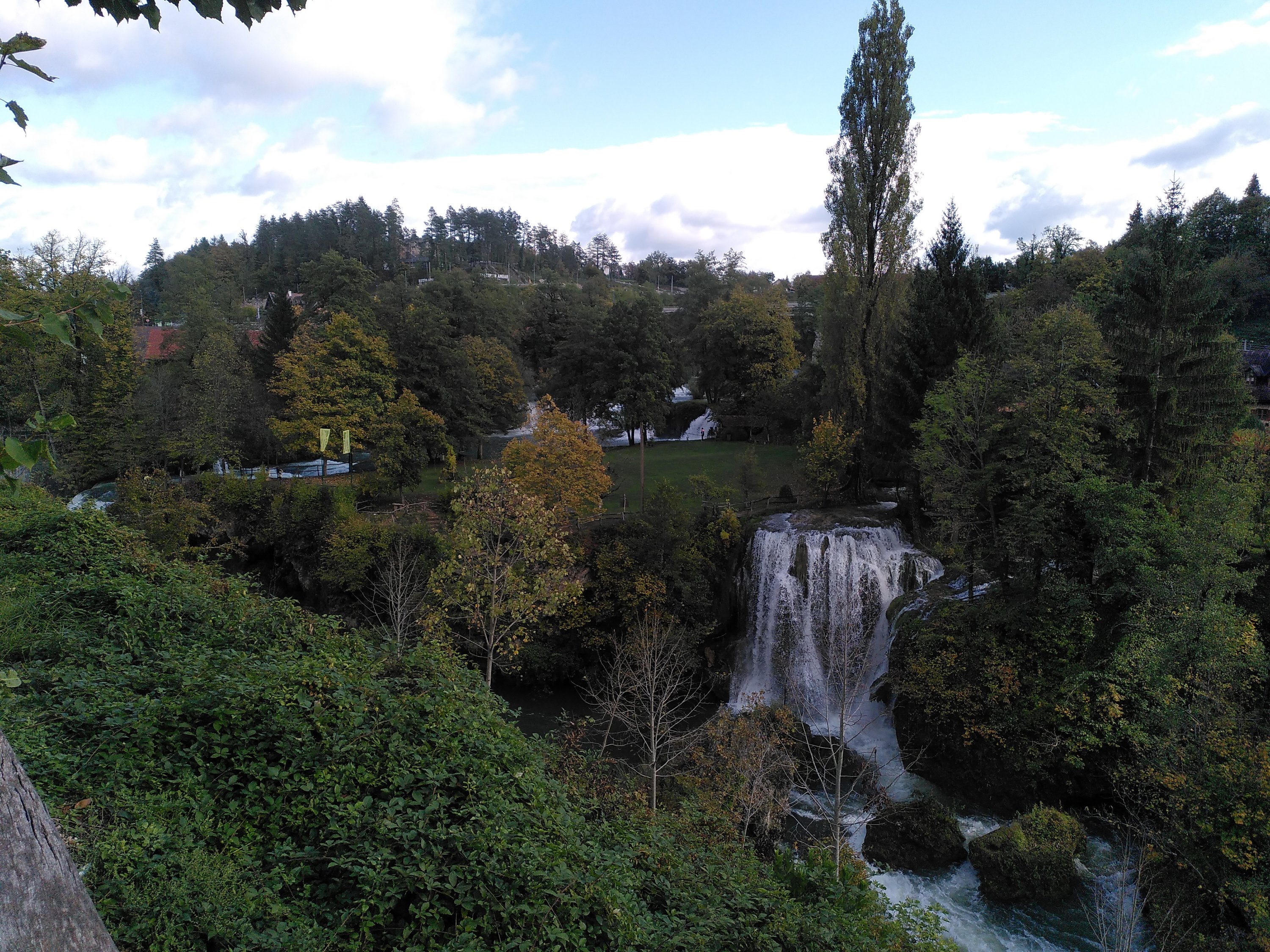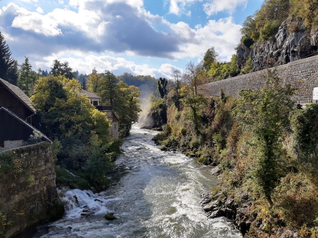 Gegen Mittag hört der Regen auf. Und wir sind wieder am Auto.🙄 Wir fahren weiter zu einem Ort den wir auf dem Hinweg am Sonntag im Regen, gesehen hab und ich dachte, die Straßen seien überschwemmt. Nein, durch den Ort Slunj fließt ein Fluss und um einige Häuser rauschen Wasserfälle. Faszienierend wie die Häuser in das Ambiente der Wasserfalllandschaft gebaut wurden. Dort kam die Sonne raus und wir machten ein spätes Mittagspicknick, und wir erreichen freudige 6°C🥶
