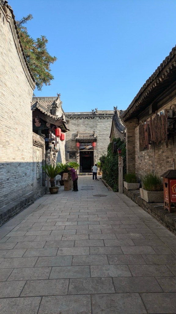 Dann erreichte wir pingyao und bekamen noch etwas von dem besonderen Städtchen zu sehen. Es ist komplett mit einer erhaltenen Stadtmauer umgeben und unsesco Weltkulturerbe. Mit kleinen Mini-Bussen wurden wir zum Hotel gebracht. Unser Hotel ist riesig und beeindruckend, wie eine kleine eigene Stadt in der Stadt.