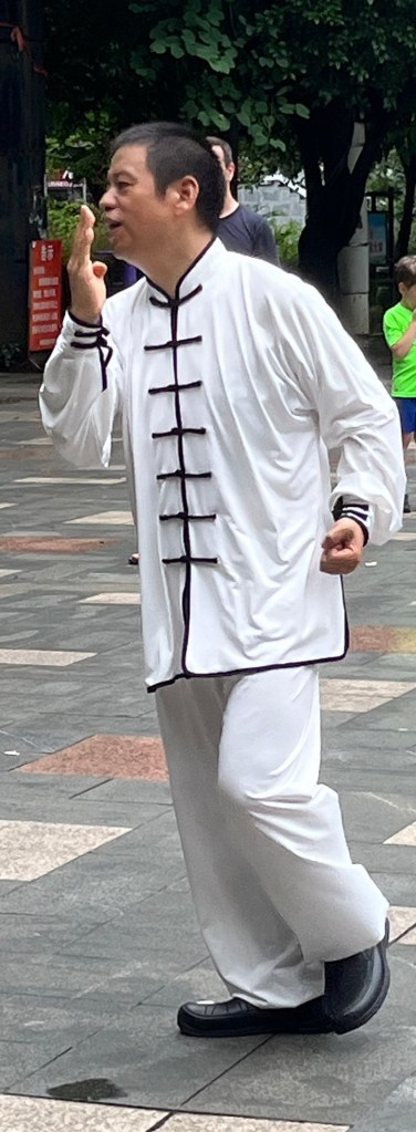 Der morgen startet mit einem Frühstück-Picknick aus dem Supermarkt in der hotel lobby. Denn dann ging es weiter zu einem Kung Fu-Kurs im Park. Bei Temperaturen und einer Luftfeuchtigkeit die ein schon vom zuschauen nasse T- Shirts bescherte.