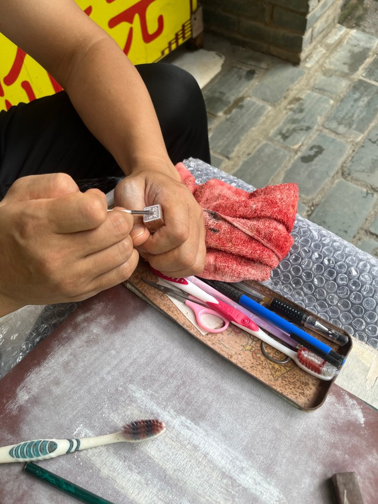 Weiter ging es mit einem Kalligraphie-Kurs, bei dem wir die Zahlen schreiben lernten und unseren Namen. Der Name wurde uns dann in Wien ( lang-lebe -) Stein graviert und wir konnten ihn käuflich erwerben.